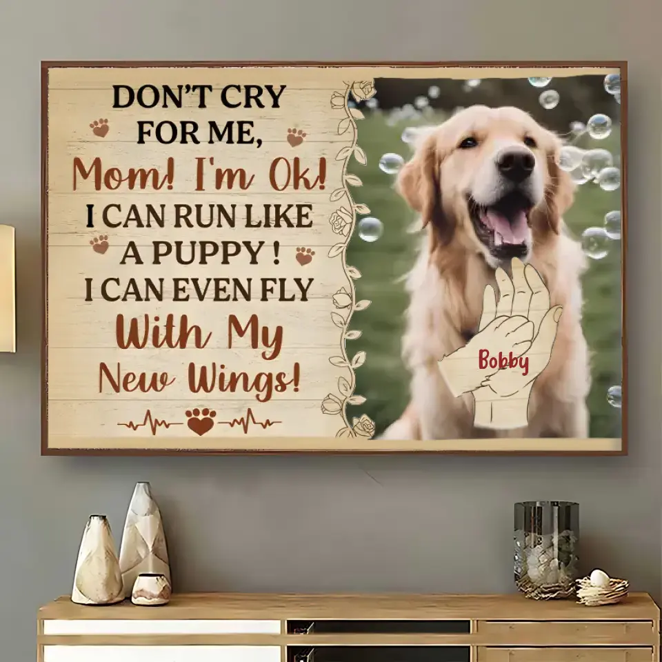 Honor the memory of your beloved pets with our Custom Photo Don't Cry For Me Memorial Poster. This unique and sentimental poster is designed for cat lovers, dog lovers, cat moms, dog dads, cat dads, dog moms, and all who cherish their furry friends. Whether you’re looking for a meaningful gift for Christmas, Mother’s Day, Father’s Day, Thanksgiving, birthdays, or anniversaries.