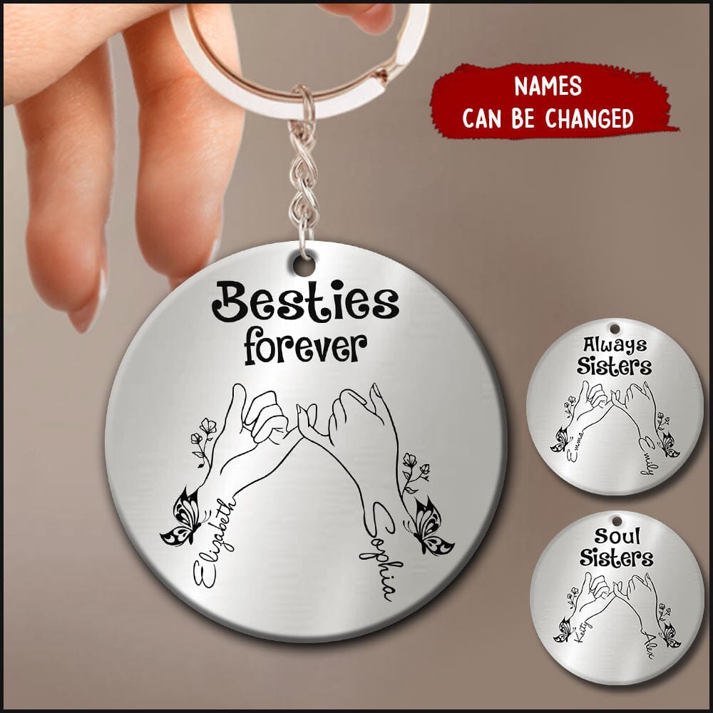 Besties Forever Pinky Promise Flower Butterfly Custom Gift For Bestie Best Friend Stainless Steel Keychain DHL24MAY22VA1