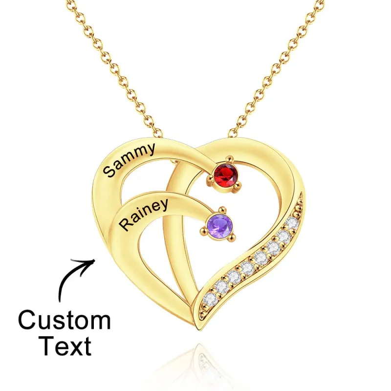 Engraved Birthstone Heart Shaped Necklace Personalized Name Necklace for Mom