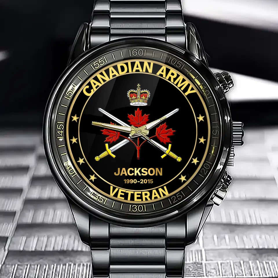 Available Product: Personalized Canadian Veteran/Police/Firefighter Badge Custom Name & Time Watch