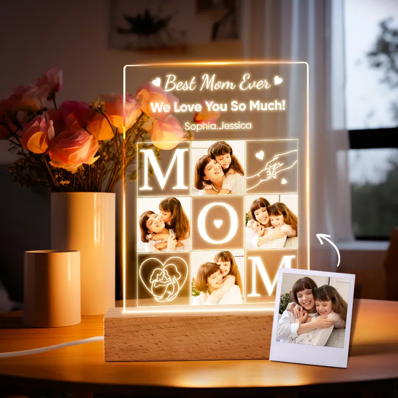 This unique acrylic photo night light is the best choice for moms to keep as a souvenir forever. This personalized Mother's Day gift has a transparent plaque made from high-quality acrylic, which is the perfect way to express your gratitude for everything your mother has done.