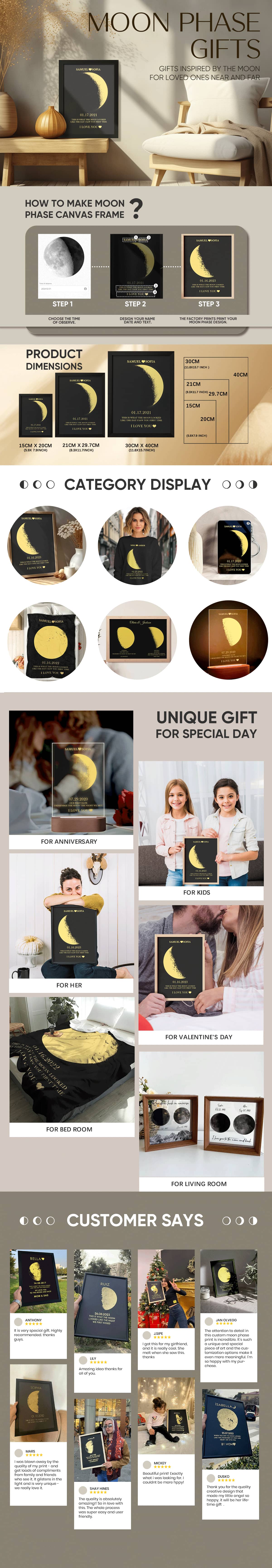 Custom Gold Foil Print Moon Phase and Names Wooden Frame with Your Text Custom Mother's Day Art Frame Best Gift for Mom40% OFF -